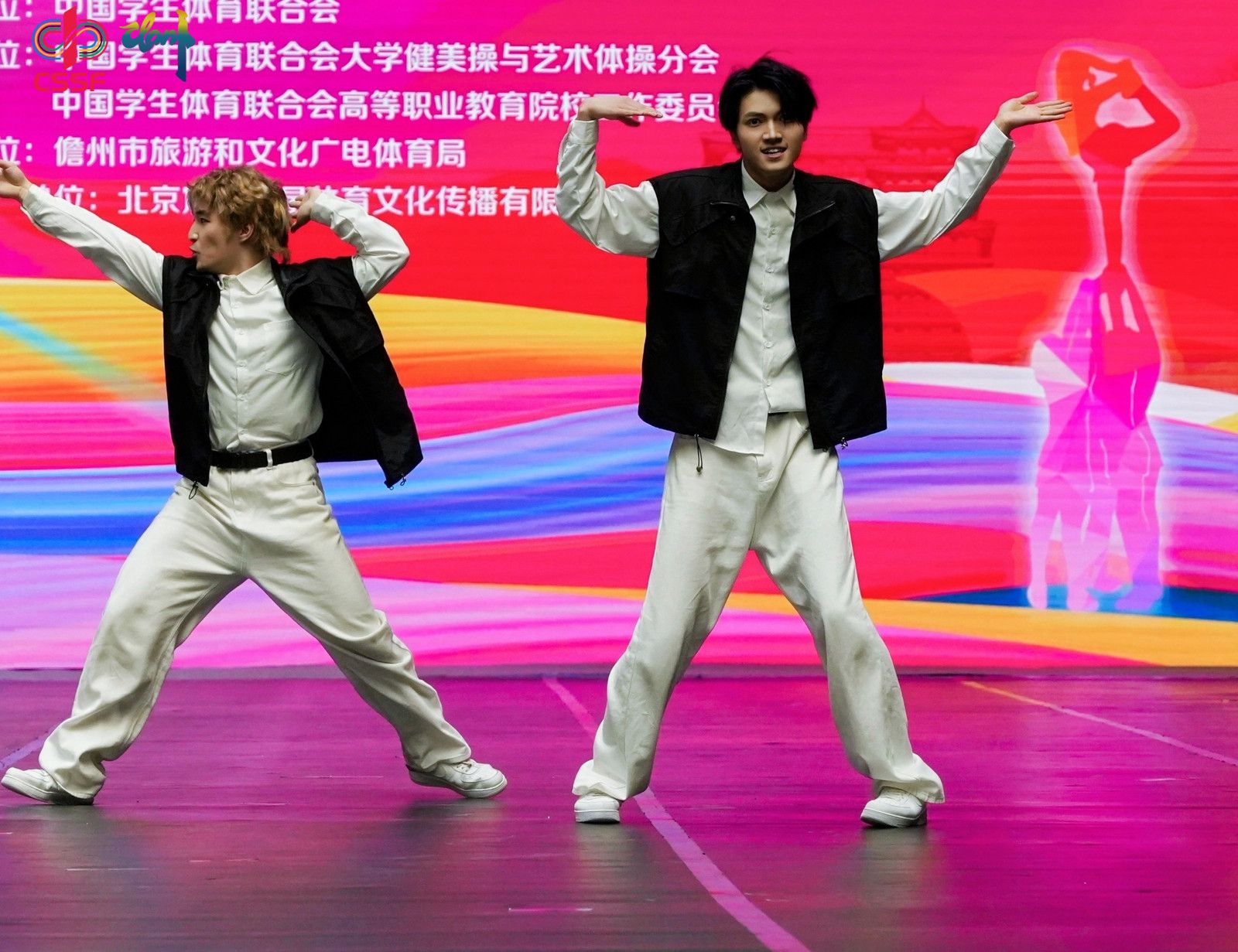 吕敏行、文前丰获甲A组自选动作舞蹈啦啦操街舞双人赛冠军。