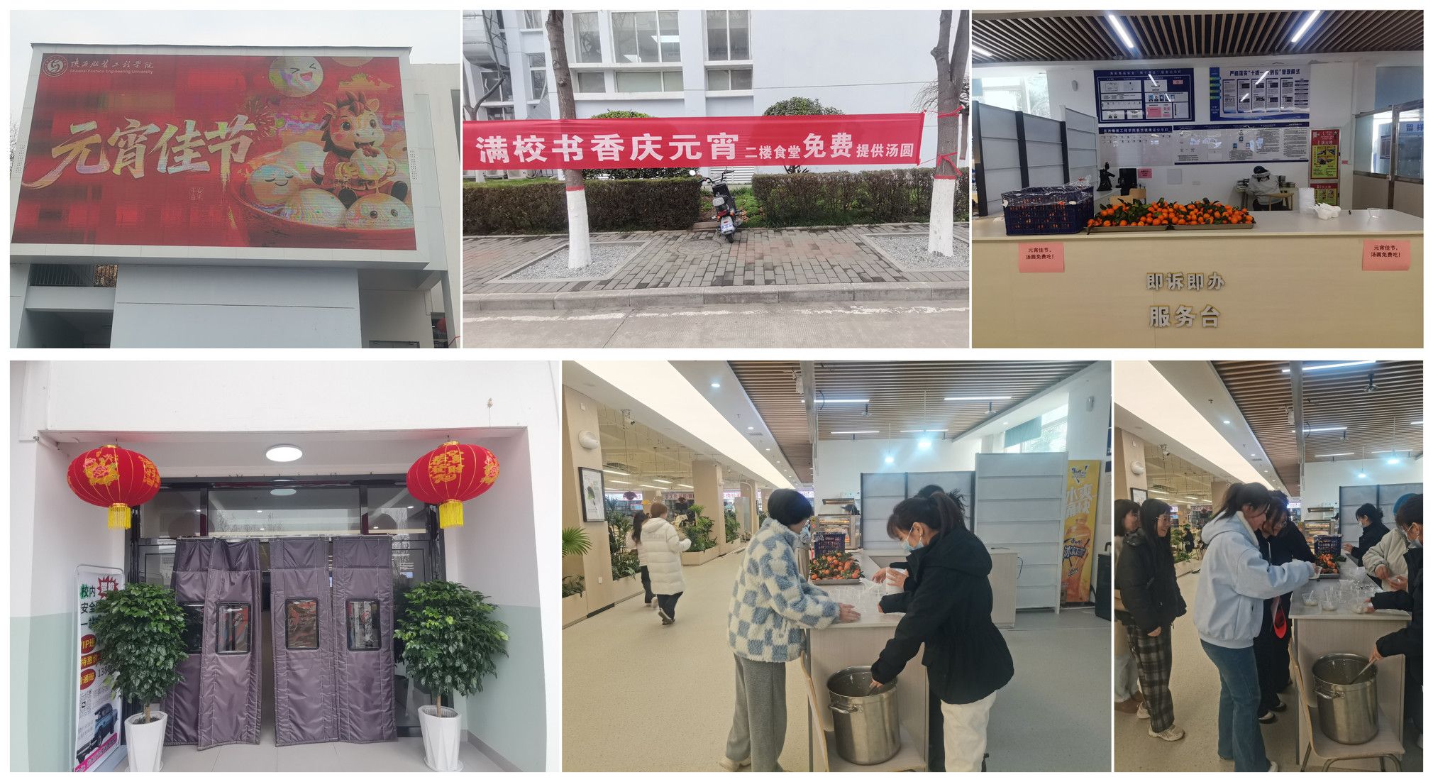 学校后勤处与餐饮公司为全校师生精心准备了免费的元宵(汤圆)和水果。一碗碗热气腾腾的元宵,一声声真挚的“节日快乐!”,不仅传递着节日的传统韵味,更饱含着学校对学子们的深切关怀与温暖。在这份浓浓的温情中,每一位陕服人都感受到了家的温暖与别样的团圆。