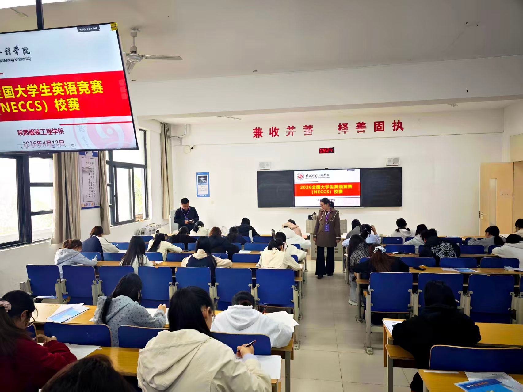 陕服新闻网讯(杨扬)4月12日上午,2026年全国大学生英语竞赛(NECCS)校级在我校教学楼B区如期开展。该赛项由全国大学生英语竞赛组织委员会、全国高等师范院校外语教学与研究协作组主办,陕西服装工程学院基础部承办,旨在激发全校学生英语学习热情,检验大学英语教学成果,为广大学子搭建展示英语综合能力的高水平平台。