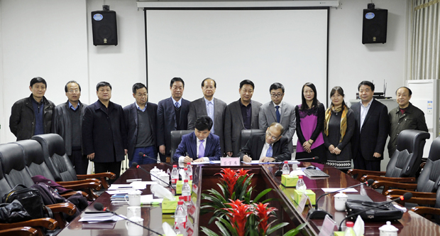 镐京集团代表吕明与天普大学代表蔻斯(Kose John)签订合作协议