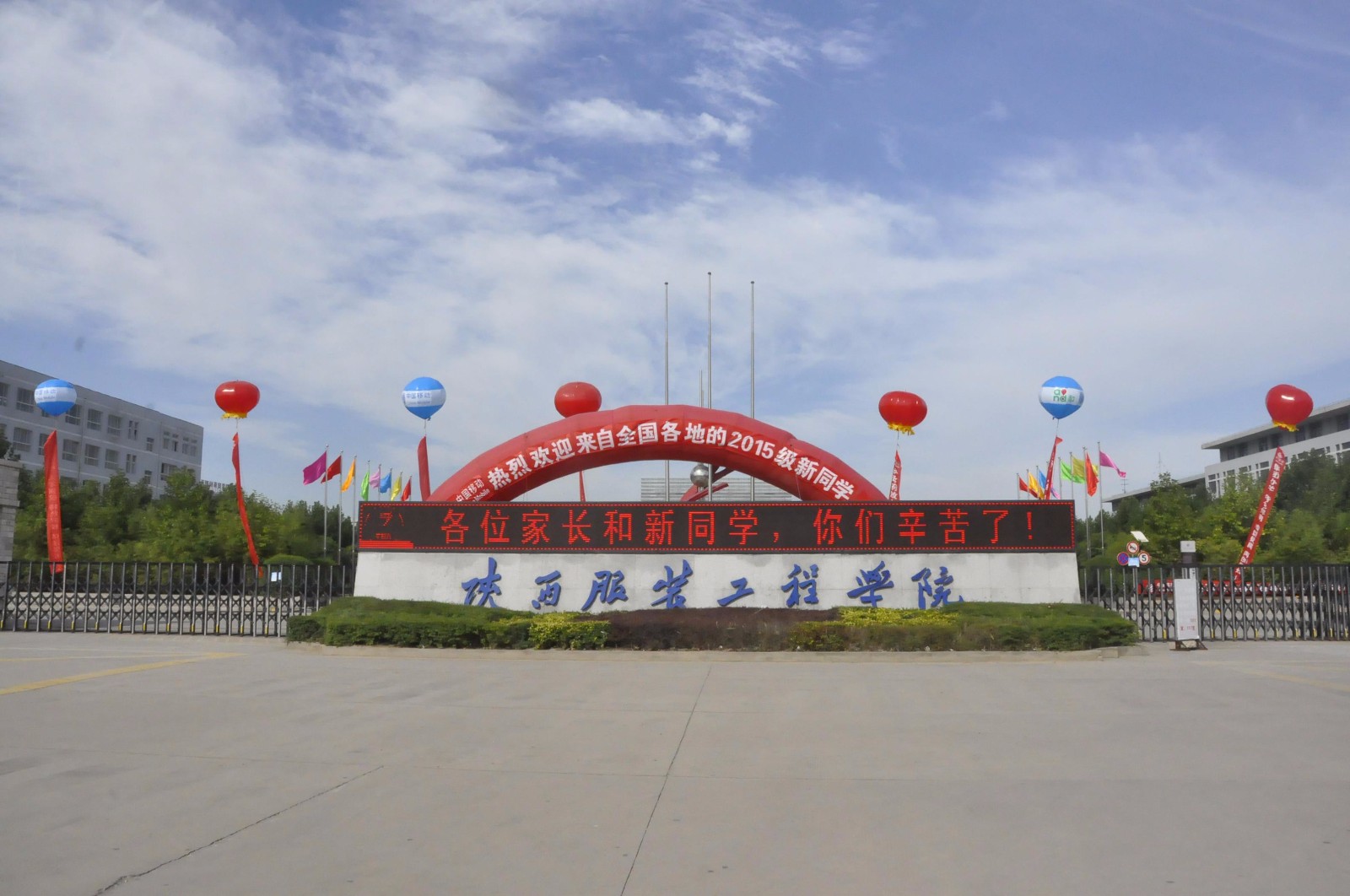 学校东大门布置一新迎接2015级新生