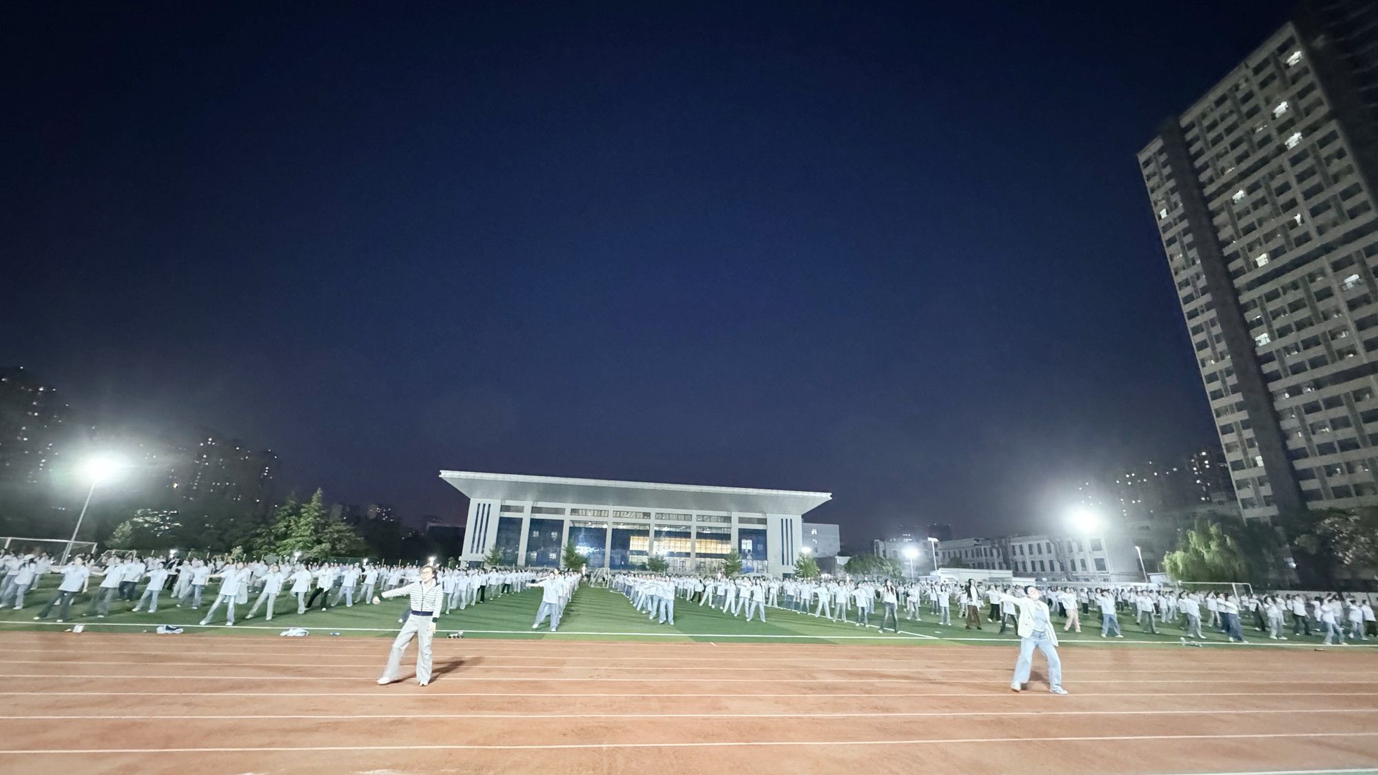 本次开幕式表演节目参与人数众多、规模宏大,排练难度高。面对时间紧、任务重的挑战,专项教研室全体教师排除一切困难,与参演学生并肩奋战在排练一线。夜幕降临,体育场灯光亮起,师生们依然在音乐伴奏下紧张有序地排练,热情不减、劲头不退。教师们还利用课余时间加强训练,抠好每个动作、抓好每个环节,力争在开幕式上呈现最佳效果。正是这份执着与坚守,让每一次排练都稳步推进,让表演节目日臻完善。