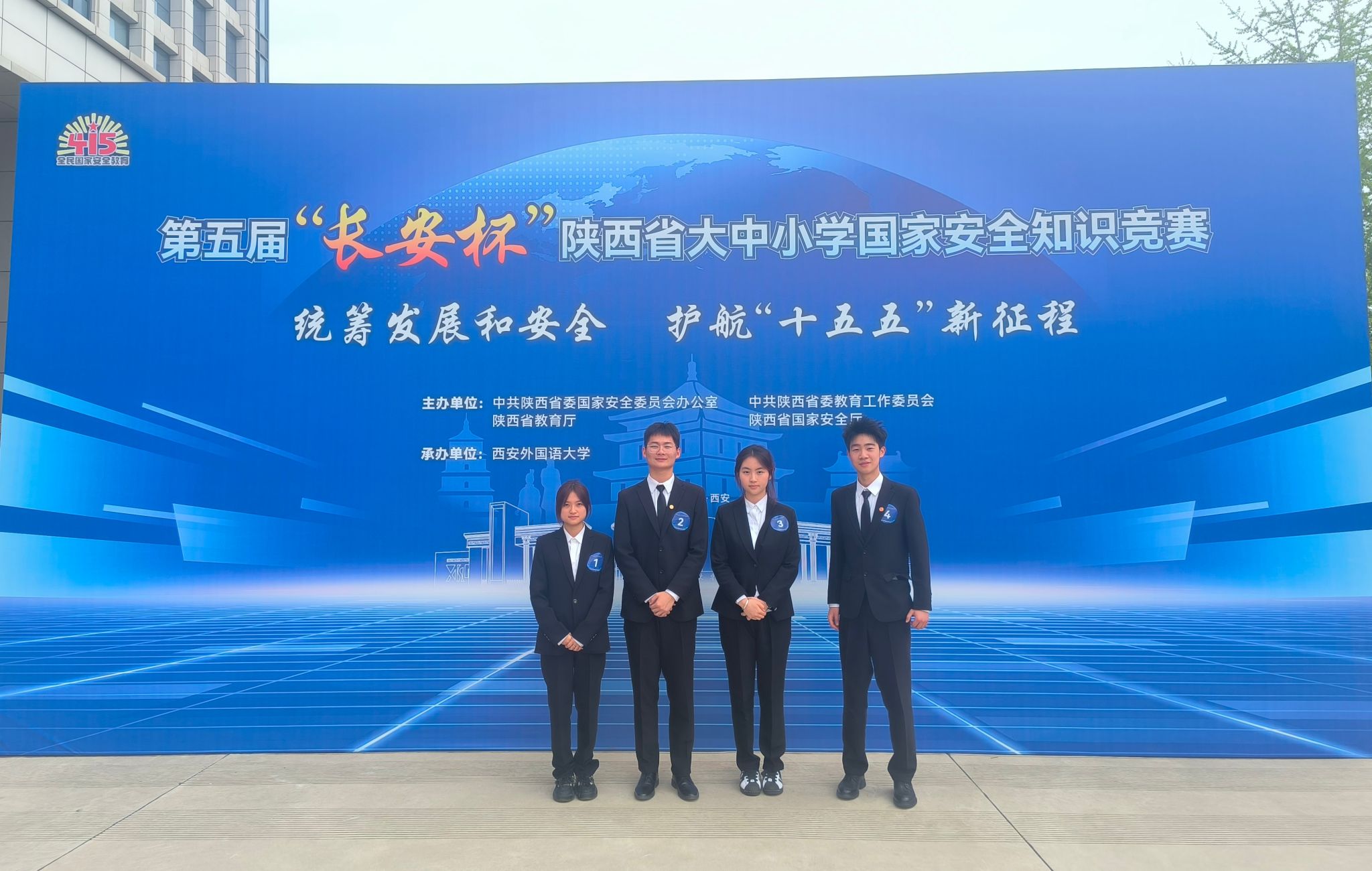 陕服新闻网讯(学生处)近日,由陕西省委国家安全委员会办公室、省委教育工委、省教育厅和省国家安全厅主办的第五届“长安杯”陕西省大中小学国家安全知识竞赛(高校组)决赛举行。我校荣获“优秀组织单位”称号,郝谊、陈昱杭、孙艺菲、余金杉等4名同学代表学校参赛。在主题征文中,获二等奖1项、三等奖2项;书画作品获二等奖1项、三等奖2项。